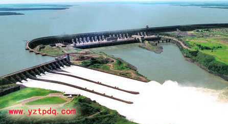 伊泰普水電站位于巴西與巴拉圭之間的界河——巴拉那河(世界第五大河,年徑流量7250億立方米)上,伊瓜蘇市北12公里處,是當今世界裝機容量第二大,發電量最大的水電站。(裝機容量最大的是長江三峽水電站,總裝機容量將達到2250萬千瓦,年發電量為900億度左右。)由巴西與巴拉圭共建,發電機組和發電量由兩國均分。