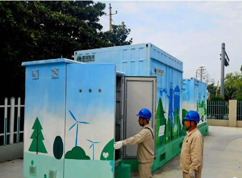 “這座儲能柜如同一個大型充電寶,一次充滿存電50度,能隨時為充電樁和供電所辦公場所提供綠色電能。”蔣英介紹,建成投用的微電網,從發電、儲能到充放電,在供電所形成內部循環,實現運營辦公與充電設施用電的自產自用。據統計,高郵開發區供電所“零碳”微電網工程投用后,預計年發電量超8萬千瓦時,與傳統火電相比,相當于年減少標準煤約29噸,年減排二氧化碳87噸。