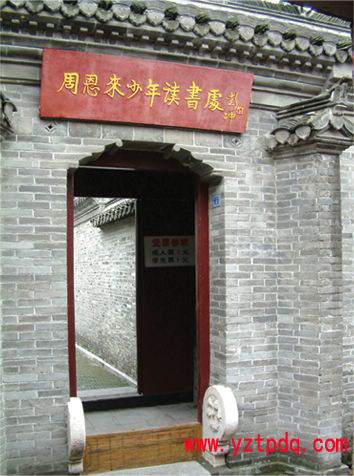 周恩來少年讀書處位于揚(yáng)州市寶應(yīng)縣城水巷口3號,原為周恩來外祖父陳沅的宅第。整個建筑為明清風(fēng)格,占地700平方米,建筑面積500平方米,共有房屋十八間。讀書處人門朝北,門樓古樸莊重,門楣上方是原全國人大常委會副委員長彭沖親筆題寫的“