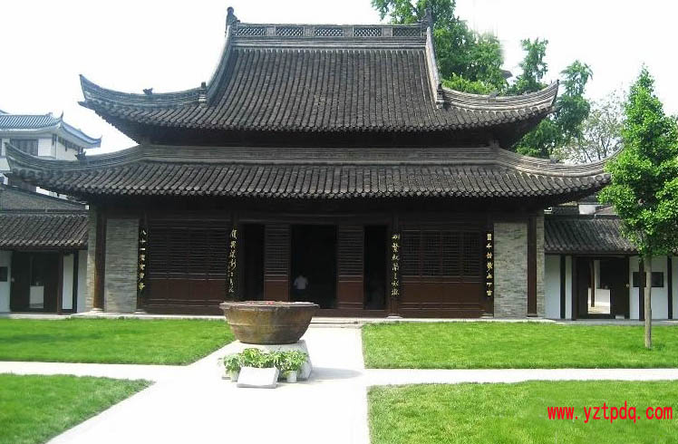揚(yáng)州八怪紀(jì)念館由西方寺改建,八怪的代表人物金農(nóng)晚年即生活于寺中,以其故居為館,實(shí)在難得。西方寺建隋朝,原為避風(fēng)庵,面臨大江,據(jù)說(shuō)唐代時(shí),寺前掘得三尊石佛,唐太宗敕賜“西方禪寺”,不久僧人智完遷建該寺于今址。兵燹戰(zhàn)火,屢廢屢修,所幸明代大殿巍然不動(dòng)。大殿構(gòu)架多為楠木制成,其梁架很有特色,柱頂做卷殺,成覆盆形式。梁架全部露明造,正中縫作抬梁形式,為月梁形制,山面為穿逗式。大殿內(nèi)彩繪在揚(yáng)州地區(qū)少見,因揚(yáng)州梁架都精于雕鏤,少施彩繪,但大殿內(nèi)卻遍施彩繪于梁架之上,甚至不用藻井,而以五彩遍裝,從僅存的小片彩繪分明看出,梁檁枋的彩繪為宋代風(fēng)格。而大片保存完好的則是明代早期彩繪風(fēng)格:構(gòu)圖鮮明,多用連枝圖案,花紋輪廓簡(jiǎn)單,色彩多用青綠及黃白互相襯托,表現(xiàn)花紋和底色。修復(fù)時(shí)采取了“以舊還舊”的古跡保護(hù)理論,盡量不損壞梁架造型及彩繪,使今人能窺見宋明的建筑藝術(shù)。王振世的《揚(yáng)州覽勝錄》載:“清乾隆中,仁和畫師金冬心先生游揚(yáng)州,嘗客寺中,后歿于世。”金農(nóng)晚年信佛,專事畫佛寫經(jīng),如今的金農(nóng)寄居室內(nèi)復(fù)原了他的起居繪畫的陳設(shè)。他在寺中曾題詩(shī)壁上:“無(wú)佛又無(wú)僧,空堂一盞燈。杯貪京口酒,書殺剡中藤。占?jí)艚穸紤?yīng),諛人老未能。此處何所想?池上鶴窺冰。”看來(lái)當(dāng)時(shí)境況甚為凄涼,畫家孤燈獨(dú)臥,形只影單,但可敬者“諛人老未能”,決不趨炎附勢(shì),寧可“池上鶴窺冰”,保持清雅和高潔,以其人品藝品方面贏得人們的緬懷??梢愿嫖肯壬氖?,如今他的故居已成紀(jì)念他們的地方——八怪的紀(jì)念館,其中八怪的身平業(yè)績(jī),飄香的翰墨都使后人瞻仰到八怪的赫赫風(fēng)采。
