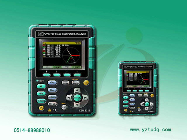 6310 電能質量分析儀設計符合國際安全規格IEC61010-1 CAT.III 600V。諧波測試可達63次。采用大型彩色LCD顯示屏。具有5種接線系統:單相2線(4回路)、單相3線、三相3線(2回路)、三相4線、單相3線+三相3線(SCOTT WIRING)。各種功率測量方法包括功率質量分析。