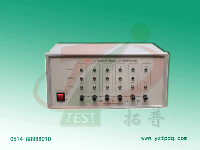 TPJXC-B 太陽能光伏接線盒二極管通斷測試儀是專用于光伏接線盒中在線二極管和各類分立二極管通斷的測試。光伏接線盒二極管通斷測試儀采用交流電源測試,可同時測試五只串聯二極管的通斷,具有二極管斷路光報警及短路聲光報警的功能,外形美觀大方,顯示清淅直觀,可靠性好等優點。